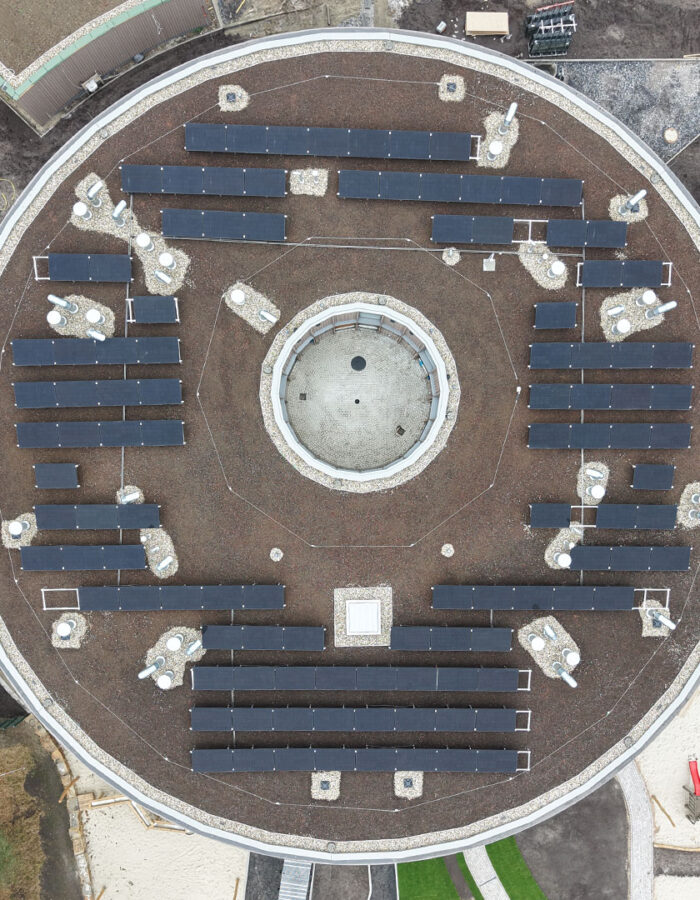 Zukunftsenergie für die nächste Generation. An der Kita der Stadt Ahaus „Wilde Wiese“ wurde durch ESK eine moderne Photovoltaik-Gründach-Anlage umgesetzt.